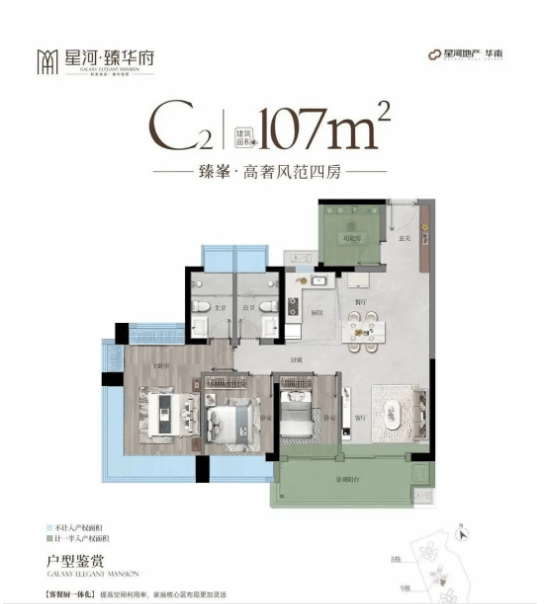 臻峯·建面约107㎡高奢风范四房:光与风常驻家中,舒卷人生大格局。约100%使用率搭配全南向通透设计,4开间朝南,让室内每个空间都能享受充足阳光;主卧配备270°全景飘窗,视野开阔,将山林景观尽收眼底;户型布局合理,动静分区明确,兼顾居住私密性与公共空间的互动性,适合改善型家庭居住。
