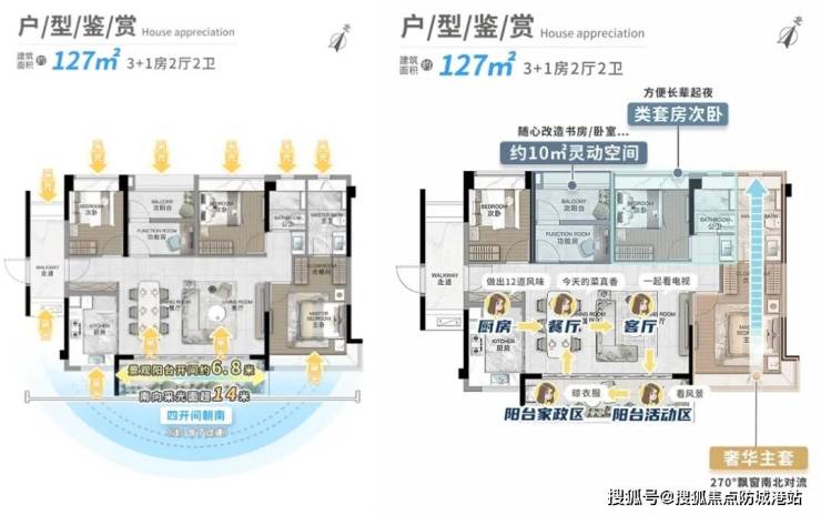四开间南向采光:13.2米超长南向采光面,双面景观阳台。