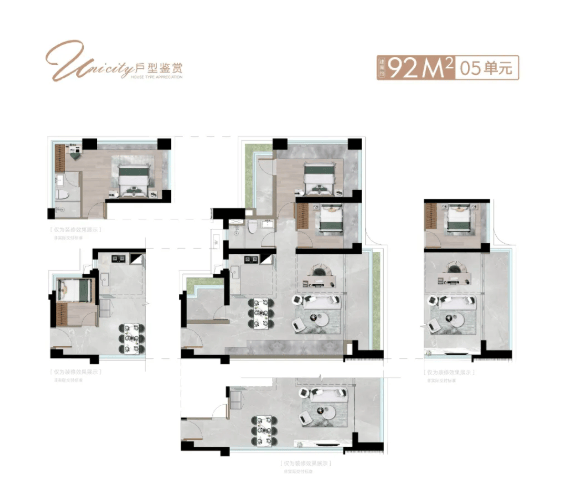 建面约92-110㎡:适合年轻家庭或首次置业者,设计紧凑实用,功能分区合理。