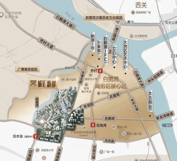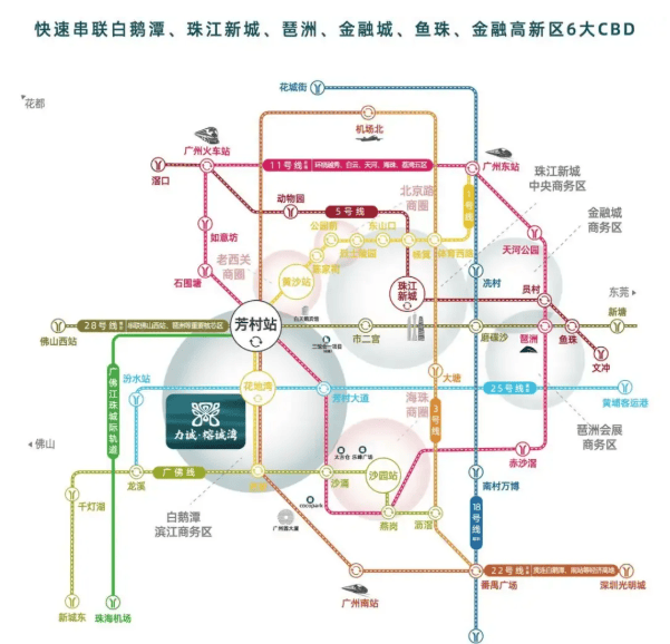 虽然未来版块内不会有地铁规划,但项目距离楼盘600米左右有一个远期规划的25号线汾水站,未来将大大减少通行时间。目前,楼下就有茶滘总站,乘坐106路公交三站即可到达芳村站,方便快捷。