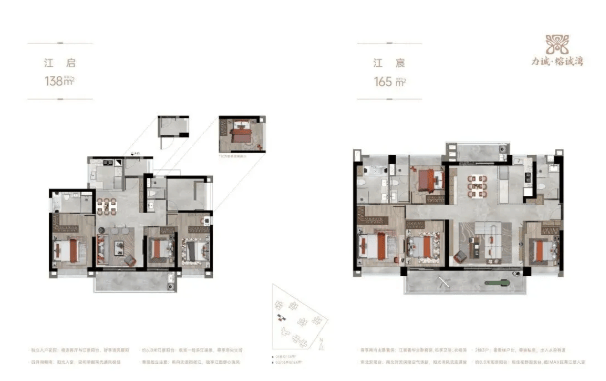 建面约138/165㎡:一线江景大四房,宽敞明亮,适合追求高品质生活的家庭。
