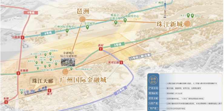 项目未来发展潜力巨大:2024年金融城综合交通枢纽建成后,将汇聚多条地铁及城际轨道,实现珠江新城、琶洲及CBD核心区的一站直达。周边规划包括高端商业、酒店及综合配套,形成城市中心稀缺的居住与商业复合区,为投资及居住双重价值提供保障。