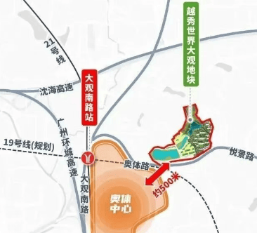 项目地处天河奥体板块核心,现状通过悦景路连接珠吉路、奥体路等主干道,可快速接入广园快速等交通大动脉,上下高速便捷。值得期待的是,悦景路拓宽工程已进入竣工倒计时,改造后将形成 “主路 + 辅路” 双向六车道通行体系,大幅提升通行效率。