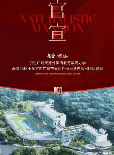 项目自身配建 15 班幼儿园与 24 班小学,其中小学正式引进广州天河外国语教育集团合作办学。作为广州优质教育品牌,天河外国语学校享有多项荣誉,新建学校毗邻月亮湖,采用山水书院设计,将自然教育融入日常教学。