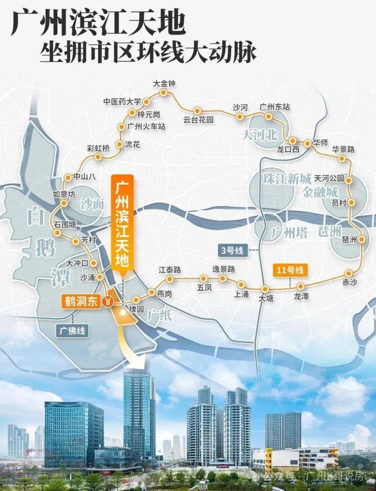 项目门口的地铁11号线鹤洞东站,距离项目直线距离不到200米,规划中的佛山地铁11号线也紧挨项目南侧设站,通过广州首条环线11号线,可以速连珠金琶CBD,也可以在大湾区艺术中心,邂逅艺术的灵感,或漫步老西关永庆坊,感受百年烟火气...