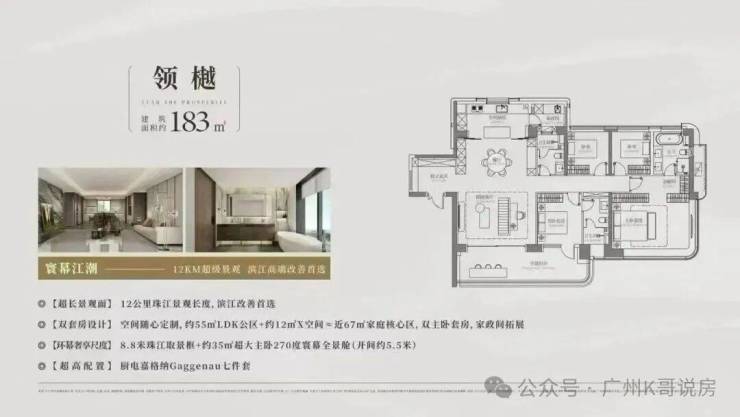 1,占据稀缺的江景资源,距离江最近仅100米,是广州唯一一个体量庞大、配套全面的综合体。