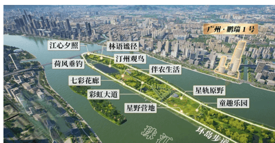 项目配套堪称 “全球顶配”:自带鹏瑞会所(涵盖商务谈判、圈层宴请、电竞、酒会等多元场景,提供私人定制服务)、云端停机坪(满足高端出行需求)、湾汇高定商业中心(引入全球奢侈品牌与高定服务);同时,鹏瑞集团取得珠江江心岛北帝沙岛经营权,将其打造成世界级江心生态岛,业主可享专属生态休闲体验。此外,项目融入海绵城市理念,地面空间开放给行人与绿植,既美化环境又应对气候挑战,实现 “奢华与环保” 的平衡,为居住者提供可持续的高端生活环境。