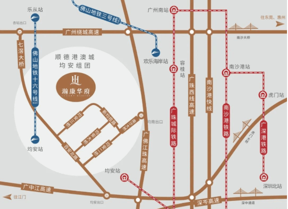 项目坐拥发达的交通路网,15分钟可达中山,3站到广州,一小时内通达广深莞都市圈。