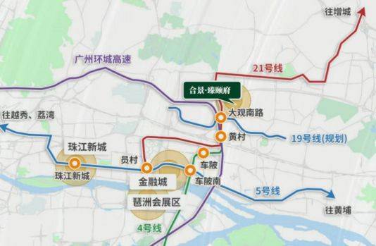 交通网络高效通达:项目距地铁21号线智慧城站约1.5公里、4号线黄村站约2公里,自驾通过广园快速、科韵路等主干道,20分钟内可达珠江新城、金融城、琶洲。规划中的地铁19号线大观南站(预计2025年开通)将进一步提升轨道交通便利性。此外,广佛东环线、穗莞深城际轨道(均在建)将实现30分钟直达白云机场与广州南站,强化湾区互联能力。