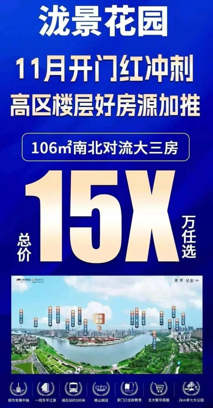禅城泷景花园:15 年成熟江岸大盘,双十一 106㎡大三房 15X 万起抄底正当时