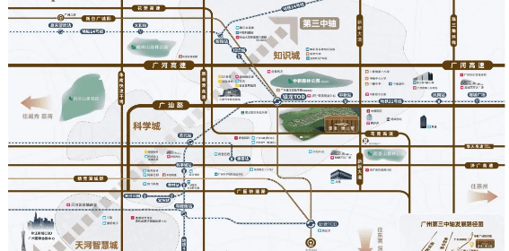 答:便捷,距地铁 21 号线中新站约 500 米,4 站到天河,还有多线路、主干道覆盖,大湾区出行无忧。
