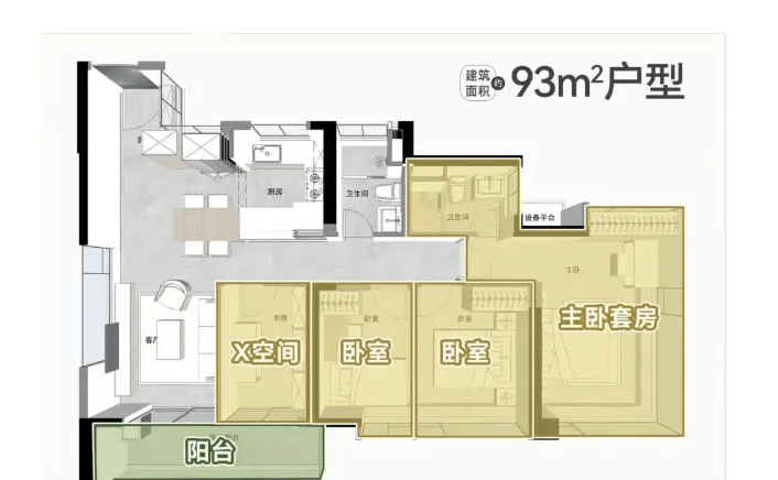 该户型为项目核心改善户型,空间尺度充足,布局大气,适配三代同堂或对居住品质有较高要求的改善家庭,既能满足多人口居住需求,又能彰显居住品味。