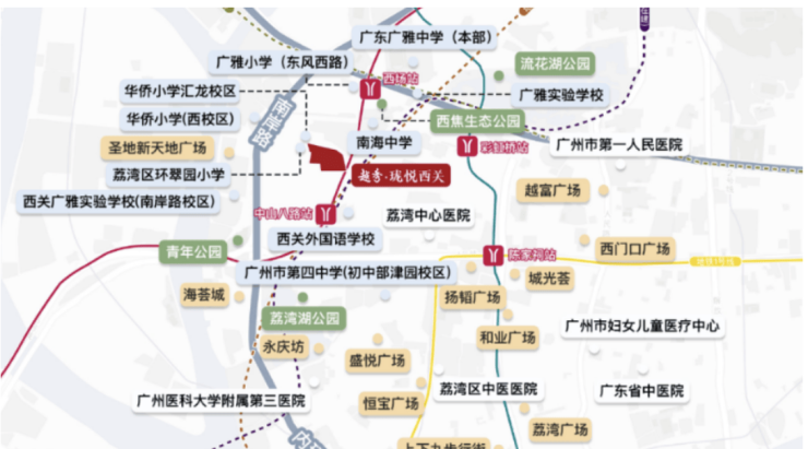 除了配建学校,项目周边既有教育资源也非常充足,包括华侨小学本部、环翠园小学,以及区域范围内具有优质口碑的真光中学、广州一中、四中、西关外国语等重点中学,形成完善的多梯度教育体系。对于重视教育投入的家庭来说,“家门口优质资源 + 周边名校覆盖”是非常理想的组合,既有路径保障,又有升学空间,能确保孩子整个成长周期的持续性与稳定性,这也是许多改善型购房者选择该盘的重要原因。