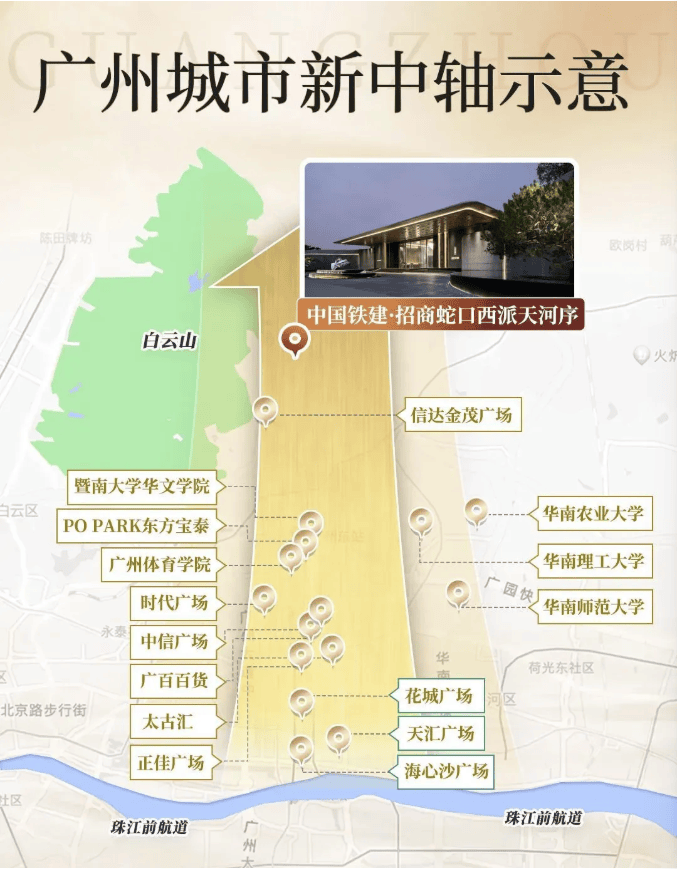 在广州的城市叙事中,“中轴线”三个字拥有至高无上的分量。它不仅是地理意义上的中心,更是资源、财富与时代目光的汇聚之地。在这条堪称城市脊梁的黄金线上,每一寸土地的焕新都牵动着全城的期待。西派天河序,便诞生于这条中轴北延段的关键节点——梅花园板块,其前身梅花铝厂地块的蜕变,宛如一部微缩的城市更新史诗,注定要写下浓墨重彩的一页。