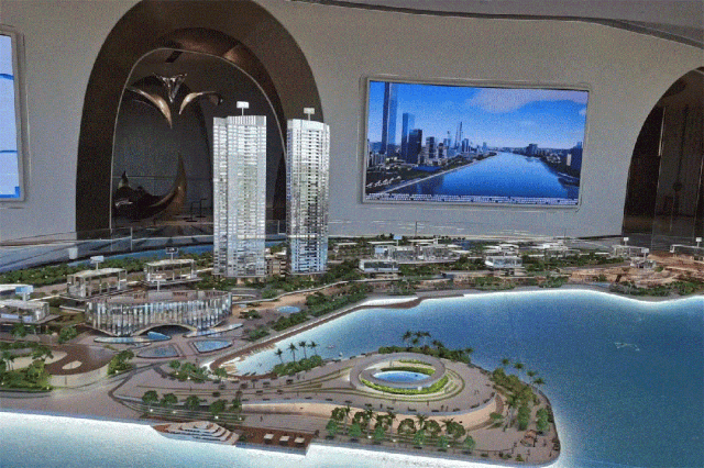 保利珠江天悦的诞生,正是基于对这种市场痛点的深刻洞察。项目选址于广州荔湾区白鹅潭 CBD 核心区,这里不仅是广州西翼发展的引擎,更是连接珠三角乃至大湾区的重要枢纽。更令人振奋的是,项目独占约 700 米的珍贵江岸线,怀抱 8 万平方米的内港湾,傲踞珠江、流溪河、增江三江交汇之处。这种“三江握手”的地理格局,在广州乃至整个华南地区都是绝无仅有的。每一寸土地都蕴含着不可复制的自然禀赋,每一处景观都承载着城市的记忆与未来的愿景。