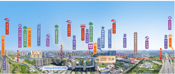 项目位于禅城绿岛湖科海路和湖田路交汇处,距离绿岛湖仅400米,被定义为继亚艺湖、千灯湖之后的第三个佛山富人区。绿岛湖区域是佛山市规划的重点发展区域之一,旨在打造一个生态宜居的城市中央居住区(CLD)。