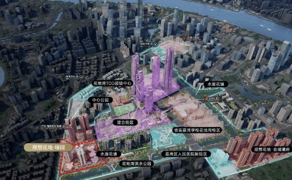 城市规划的宏大叙事总是需要时间的沉淀来验证,而万科·理想花地·臻园所在的这片土地,正是这一进程的生动注脚。根据2023年发布的《荔湾国土空间总体规划》,花地湾被明确列为重点发展区域,其与白鹅潭、聚龙组团共同构建了半径约2公里的“黄金三极”。这种组团式的开发模式,打破了单点发展的局限,形成了产、商、住一体化的新城市中心格局。从国家战略支点到湾区极点辐射三大都市圈,花地湾正逐步从一个地理概念转变为具有全球影响力的城市地标。正如纽约哈德逊广场、伦敦国王十字等世界级滨水区的崛起历程一样,花地湾的蜕变也离不开全球顶尖设计团队的介入。KPF、Sasaki、日建等国际知名机构先后参与规划,历经多次研磨与迭代,最终呈现出一座占地面积达1平方公里的活力大城。这种高起点的规划背景,使得项目周边的天际线、公共空间与建筑风貌都具备了国际化的审美标准。