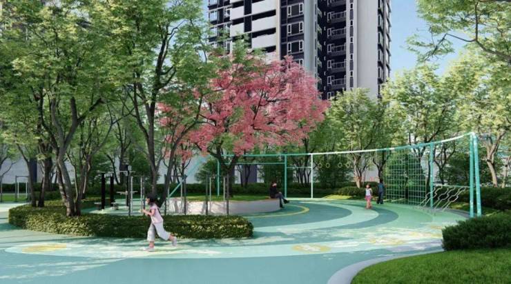 【综合性休闲空间】占地约500㎡,设置青年健身区与老人健身区,家人共享娱乐休闲时光