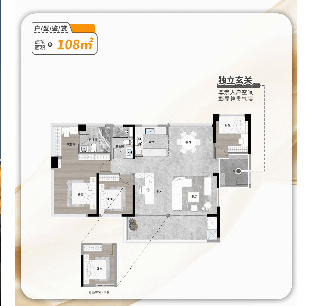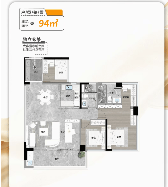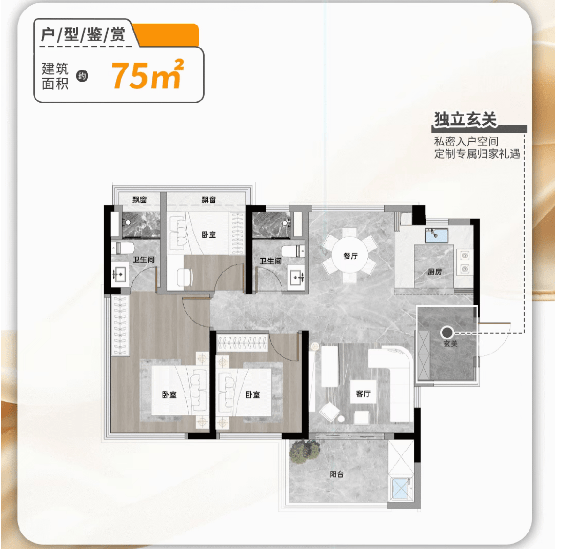 有东南向建面约 75 平三房,西南 / 东南建面约 94 平三房(可做四房),以及南北对流建面约 108 平的四房,实用率超 120%。如建面约 75㎡三房户型有独立玄关可改储藏室,U 型厨房操作空间大,主套 270° 环幕视野;建面约 94㎡四房户型采用 LDKG 一体化设计,约 6.4 米超大阳台;建面约 108㎡四房户型约 15 米南向超大面宽,餐客厅连通约 7.2 米南向阔景阳台。