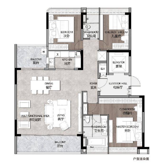 建面约200㎡的四房户型,是项目的高端标杆户型,主打高定奢居体验,适合追求高品质生活的高端改善家庭、多成员家庭或商务精英人群,完美解决了高端人群“注重私密性、追求空间阔绰、需要社交场景”的痛点。该户型拥有宽敞的专属电梯间、独立入户玄关,电梯直达入户,不仅提升了归家尊崇感,更能有效保障居住私密性,避免邻里之间的干扰,让业主拥有专属的私人空间;同时采用南北双阳台设计,其中约7.5米超大阳台环抱客厅,空间宽敞开阔,无论是日常喝茶、休憩,还是接待客人、欣赏景观,都十分合适,超大阳台可俯瞰一线河涌景观,将自然美景融入日常生活。室内格局方正,南北对流,采光通风极佳,4个卧室布局合理,空间宽敞舒适,主卧配备独立衣帽间、独立卫生间与全景飘窗,居住舒适度拉满,能够满足高端人群对私人空间的需求;客餐厨一体化设计,空间开阔,能够满足家庭聚餐、朋友聚会等多种社交需求,彰显高端居所的社交属性。该户型目前为项目主推户型,稀缺性极高,是高端改善人群的首选,想了解具体户型细节与房源情况,可拨打官方热线400-990-9752咨询。
