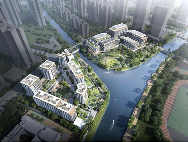 项目总占地面积45093平方米,规划计容总建筑面积78867平方米,总建筑面积约5.48万平,计划总投资约15.8亿元,分南北两个地块开发,两个地块被河涌自然分割,形成独特的滨水社区格局。其中北地块为商业兼容文化活动设施、通信及服务设施用地,建筑密度约为40%,绿地率≥30%,未来将引入商业、文化等配套,丰富业主的日常生活;南地块为二类居住兼容商业用地,建筑密度约为30%,绿地率≥35%,住宅主要集中在该地块,打造低密宜居的居住环境。