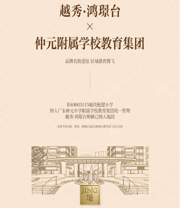 在开盘前,越秀鸿璟台就官宣正式纳入仲元附属学校教育集团统一管理,并且明确了越秀鸿璟台纳入招生范围。