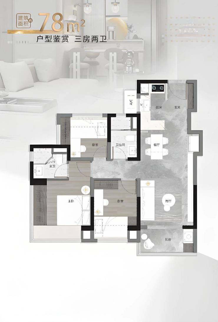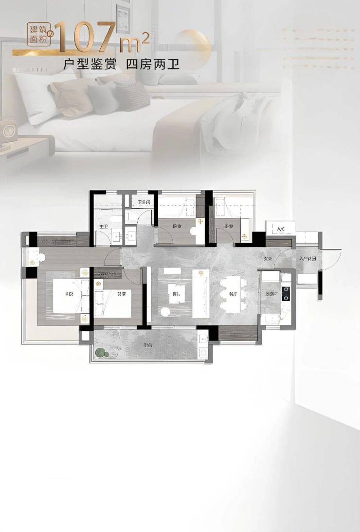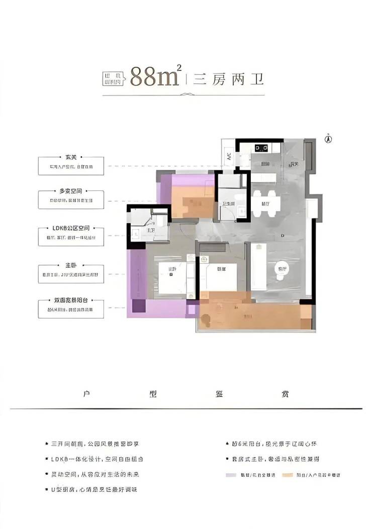 主力户型: 涵盖 78㎡三房两卫、88㎡三房两卫、107㎡四房两卫及 117㎡四房两卫四种户型,适配不同家庭结构需求。全系户型采用“全明户型 + 南北通透”设计,标配全景飘窗与双阳台,实用率超 85%。