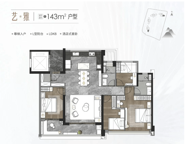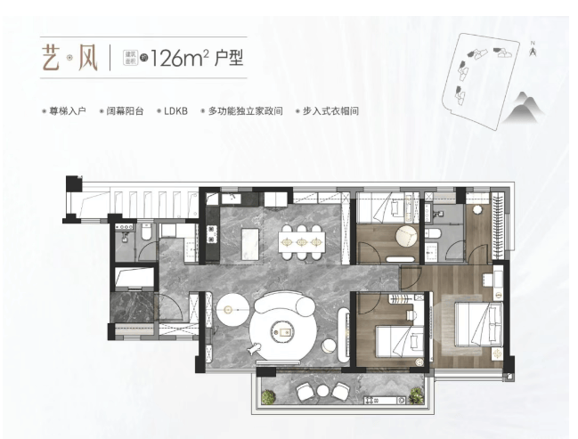中海麓府提供三种户型选择,分别是建面约126㎡三房、143㎡和170㎡的四房。每个户型均经过精心设计,注重空间的有效利用和居住舒适度。例如,126㎡户型采用尊梯入户设计,配备阔幕阳台、LDKB一体化空间等功能;170㎡户型则拥有双套房三卫设计,私厅主卧保证了主人的私密性和尊贵感。