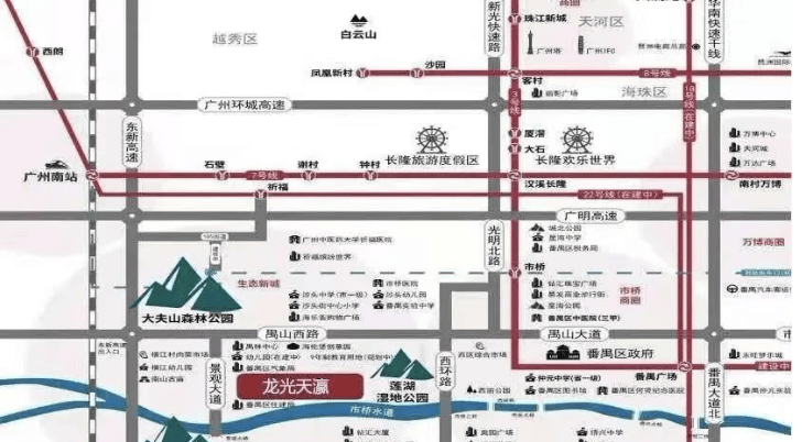 地铁3号线市桥站8站速达珠江新城,规划中的地铁16号线独角兽岛站距项目仅0.7公里