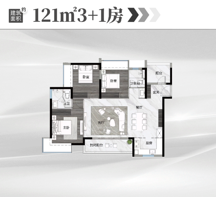 112㎡3+1房2厅2卫户型,配备+1房多功能空间,可根据需求改造为书房、儿童房等,两梯四户南向低密度布局,LDKB一体化设计,全屋80cm阔景飘窗升级,提升空间通透感与实用性。121㎡3+1房2厅2卫户型,拥有L型入户设计,尊崇感十足;约8.1m长南北通透宽厅,搭配约5m长270°观景阳台,采光通风俱佳,约46㎡豪宅式社交空间,满足家庭聚会、朋友宴请等需求。