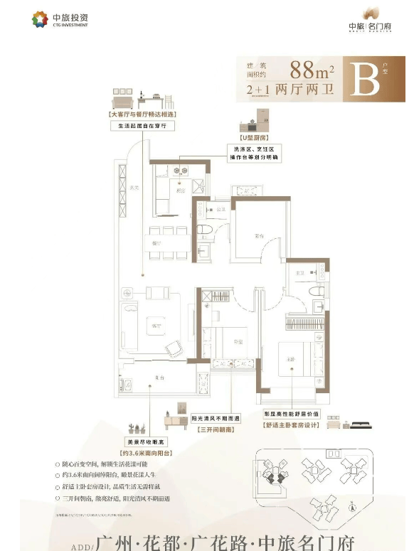 位于广州花都区的中旅·名门府,凭借其优越的地理位置成为了当之无愧的“黄金C位”。随着大湾区门户枢纽的建设推进,特别是空铁联运的发展,花都区正逐渐成为经济活力的新引擎。中旅·名门府不仅坐拥广北CBD的核心位置,更受益于周边千亿投资赋能的“空铁金廊·枢纽客厅”规划,这使得该区域的房价具有较高的增长潜力。此外,项目的高性价比还体现在其精致装修标准上,为业主节省了大量的时间和精力。