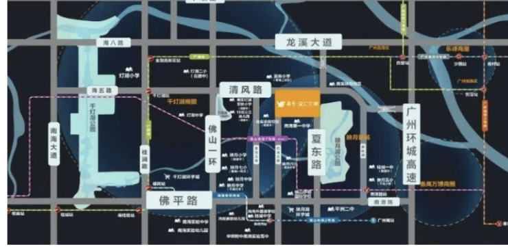 项目位于清风路主干道旁,自驾10分钟可达千灯湖金融高新区核心区,20分钟直达广州荔湾。根据《佛山市轨道交通规划(2025-2035)》,佛山7号线(清风东路站)与佛山10号线(南平东路站)双地铁交汇于项目500米范围内,虽目前尚未动工,但未来将无缝接驳广佛线及广州地铁网络。此外,南海有轨电车1号线(康怡公园站)距项目2公里,可换乘广佛线直达广州核心区。尽管当前公共交通依赖自驾及有轨电车,但双地铁的规划落地将显著提升区域交通能级,满足长期通勤需求。