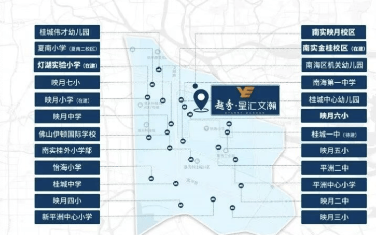 项目周边3公里范围内聚集24所学校,形成从幼儿园到高中的一站式教育闭环。其中,灯湖实验小学(2024年9月开学)与项目仅一路之隔,纳入南海实验中学教育集团,由省一级名校管理;南海实验中学映月校区(省一级)中考成绩连续19年蝉联南海区榜首;高中阶段则有石门系金桂高中(引入石门中学管理模式),师资力量雄厚。据南海区教育局2024年学区划分公示,项目纳入灯湖实验小学招生范围,业主子女可优先入读,为家庭解决教育焦虑。