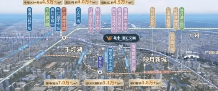 【南海住建(2024)预字第001号】越秀星汇文瀚,作为佛山南海平洲板块的标杆项目,由国企越秀地产倾力打造,经政府严格审批后正式入市。项目占据千灯湖金融高新区C区核心辐射区,紧邻映月新城2000亿投资规划区,是南海区“十四五”重点发展的中央人文区。其地理位置得天独厚,既承接千灯湖金融产业外溢红利,又坐拥映月新城“三馆一厅”(图书馆、文化馆、博物馆、音乐厅)及24万㎡活水公园等顶级市政配套,形成集产业、文化、生态于一体的全能生活大城。