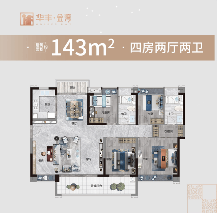 ▲建面约143㎡ 4房2厅2卫