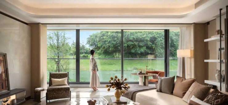 招商佛山序的园林,以曼谷四季酒店和香港瑰丽酒店为参鉴范本,将岭南文化、滨水禀赋精妙融合,以25公里黄金东平河岸线为脊柱,引东平河活水入园,打造“归家即度假”的滨水人居胜境。