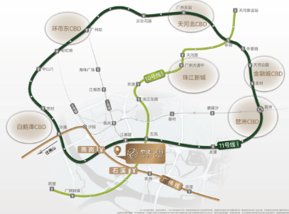 4. 项目的交通配套具体有哪些?到琶洲CBD、珠江新城需要多久?
