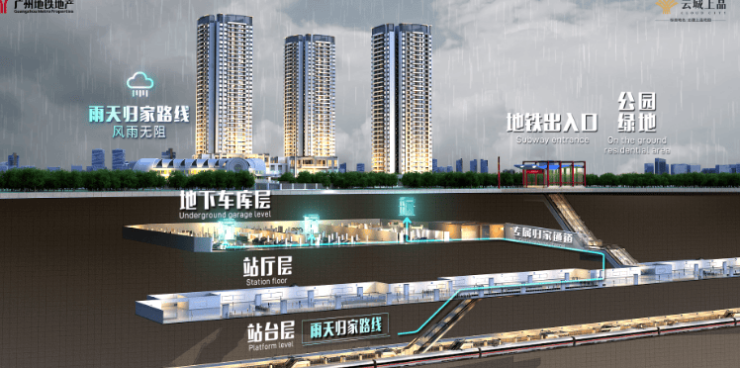 此外,广州地铁地产还充分发挥其在轨道交通领域的专业优势,将“地铁+物业”的模式发挥到极致。在白云云城上品,地铁不仅仅是交通工具,更是连接生活的纽带。通过专属归家通道、无缝接驳设计等创新举措,广州地铁地产让业主的出行变得更加便捷、舒适。这种对细节的执着追求,正是国企责任的生动体现。