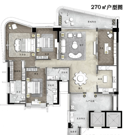 南天名苑提供多种户型选择,包括140㎡至270㎡的大面积四房双主套住宅,以及别墅和叠墅等高端产品。每个户型都注重空间布局和居住体验,满足不同家庭的需求。
