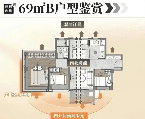 在当前楼市新规背景下,本项目积极响应政策导向,采用全新设计标准,实现约110%的惊人使用率。这意味着,即便是建面69㎡的三房单位,实际可使用面积接近76㎡,空间感远超同级产品。户型设计注重功能分区与采光通风,主力产品涵盖69㎡精致三房、85㎡舒适三房、108-113㎡阔绰四房,满足不同家庭结构的居住需求。