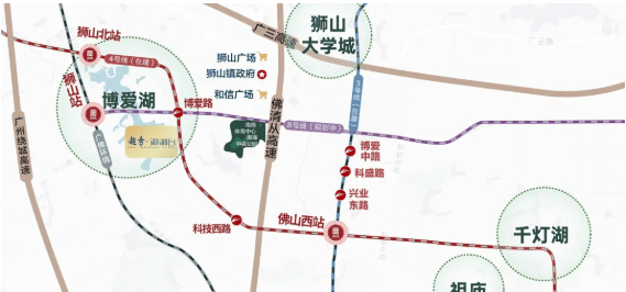 交通便捷:越秀·御湖台紧邻四横四纵三轨合一的交通枢纽网络,包括广三高速、广州绕城高速等主干道以及正在建设中的佛山地铁3号线、4号线和规划中的8号线。距离佛山西站仅约6公里,可快速通达广州南站。
