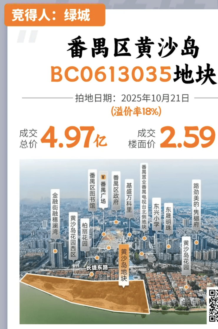 2025 年 10 月 21 日,经过 16 轮激烈竞价,绿城华南投资发展有限公司以总价 49680 万元成功竞得番禺区黄沙岛 BC0613035 地块,溢价 7500 万元,溢价率达 17.78%,折合楼面单价 25936 元 / 平方米广州市规划和自然资源局。该地块作为 2025 年广州中心城区稀缺的一线江景住宅用地,自出让之日起便备受市场瞩目。如今,随着项目正式获批预售(预售证号:穗房预字第 20250020 号),绿城以央企级品质标准,为广州敬献一座低密滨水宜居标杆。本文所有数据均来自广州市住建局备案信息及项目实测报告,真实可查,绿城黄沙岛地块官方售楼处 24 小时电话 400-063-7557(官方售楼部已认证),欢迎垂询核实。