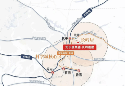 长岭雅居地处科学城旁,距离地铁21号线长平站约2.2公里,步行可能不太实际,但通过有轨电车1号线羌洞站仅需步行1.3公里即可换乘地铁,方便快捷地连接到城市其他区域。尽管周边存在早晚高峰时段的交通拥堵问题,但自驾出行可通过多条主干道迅速到达广州市中心及其他重要地点。