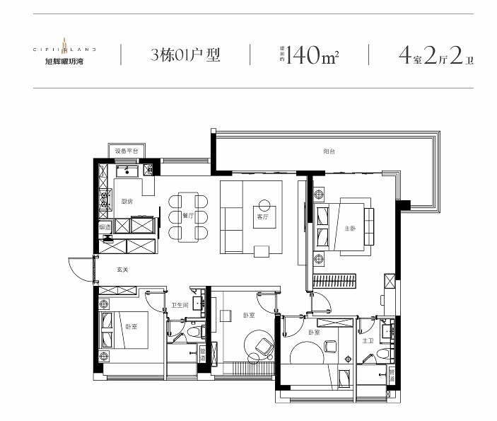 建面约110至140平方米的三至四房户型,设计充分体现居住舒适度。室内空间通透,客厅与阳台连通,采光通风良好,公共活动区宽敞大气。厨房功能完善,动线合理,便于烹饪和家庭互动。卧室布局合理,主卧套间配置独立卫生间,提高私密性与舒适感。转角阳台设计形成270度观景视野,提升居住品质。精工户型结合功能性和美学设计,满足现代家庭多样化生活需求。