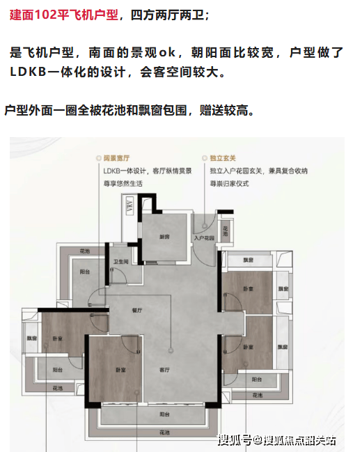 🏘️ 2T4 户,使用率 122%,四开间朝南(面宽超 10 米),LDKB 一体化设计,拓展空间约 18㎡(含双花池、阳台),适合三口之家。剩余 42 席,单价 6.2 万 /㎡起,总价 632 万起,享园林全景。