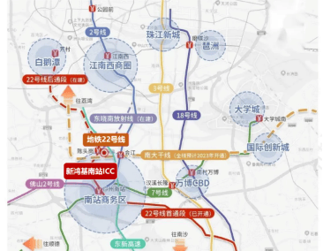 新鸿基・峻銮坐落于广州南站核心商务区,占据 “粤港澳大湾区客厅” 的黄金 C 位,尽享枢纽经济区发展红利。交通方面,项目依托南站 12 条轨道交通网络 ——4 高铁 + 4 城际 + 4 地铁,可实现 47 分钟直达香港西九龙 ICC,10 分钟抵达万博 CBD,25 分钟联通琶洲、珠江新城 CBD,轻松覆盖大湾区 1 小时生活圈。更值得关注的是,项目与广州南站无缝衔接,步行约 5 分钟即可抵达站点,同时坐拥 4 条快速干路与 3 条有轨交通,立体交通网彻底打破地域限制,无论是通勤还是跨城出行都极为便捷。