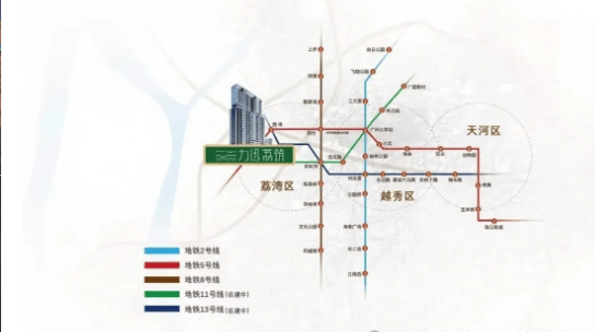 力迅荔筑坐落于荔湾区东风西路核心地段,地处老荔湾成熟生活区,地理位置得天独厚,无论是日常通勤还是周末出行,都能享受便捷的交通网络。项目最大的交通优势的便是临近双地铁,下楼即达地铁5号线西场站,同时紧邻在建中的13号线二期西场站,未来双地铁加持,出行效率大幅提升。