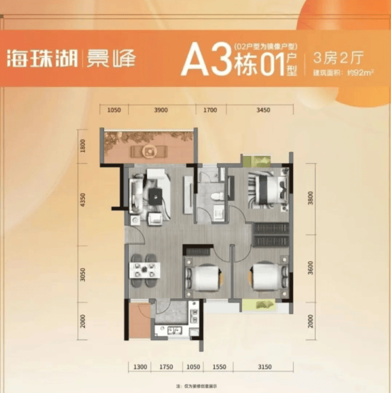 87-92平米中等户型:适合作为刚改需求的选择,功能分区合理,居住舒适度高。
