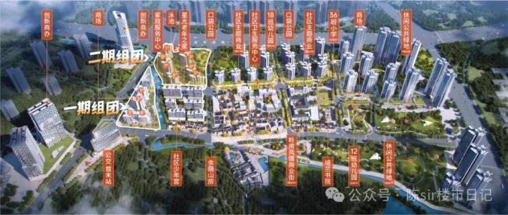 三期,也就是【玖璋组团】,三期组团位于二期组团东侧,离地铁稍微远一点,距离7号线板桥站大约700米,但离中心商业街和学校要近一些。