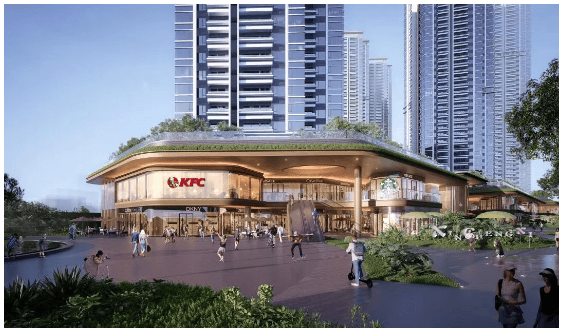 教育配套堪称 “刚需福音”,项目配建幼儿园及广外附九年一贯制公立学校(已与番禺教育局、广外签约,暂定名 “广东外语外贸大学附属广州新城学校”),业主子女可步行上学,实现 “目送式教育”,无需跨区奔波,解决家长 “上学远” 的核心痛点。商业配套成熟,项目自建约 4000㎡立体商业长廊(在建,意向引入肯德基),西侧金龙城财富广场有麦当劳等底商;2 站直达番禺广场商圈(永旺梦乐城、基盛万科里),行政、医疗、文化资源集中,未来还有天街(在建)、三甲医院加持,生活便利性持续升级。